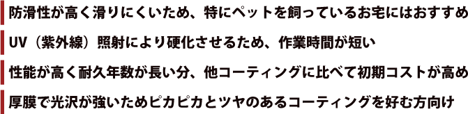 室内でペットを飼っていらっしゃる方へ、特にオススメなのはUV フロアコーティング。